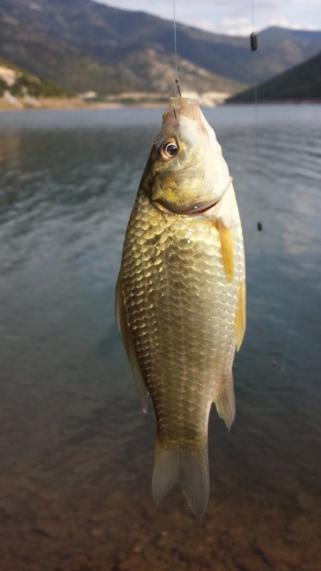 Веднаш почна да дава резултати. Длабочина околу 4.5 метри, мамец - пченица. Конец 12ка, јадица 12ка, тапа 2 грама (поради ветрот што беше присутен од време на време).